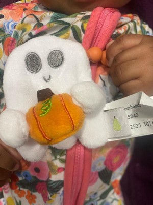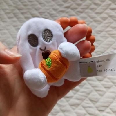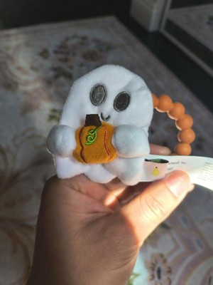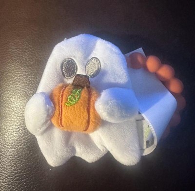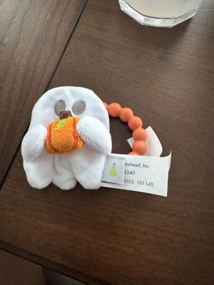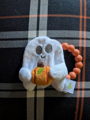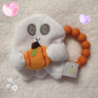 - Includes a soft plush ghost with an attached silicone pumpkin teether ring