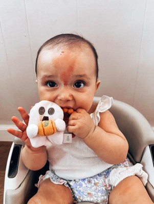 [This review was collected as part of a promotion.] This is just such a cute teether! I love that it's crinkly and my baby can teeth on it. He loves being able to play and chew! The ghost design is just the cutest. I love how durable it feels.