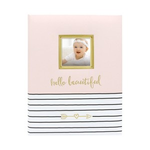 - "hello beautiful" and trendy arrow design stamped in gold foil on front of baby book