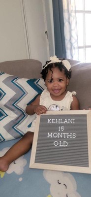 [This review was collected as part of a promotion.] This message board is perfect to mark a special moment. Material quality is soft made, accent, and feels sturdy. There's plenty of numbers, letters, and symbols. Gives a more vintage feel to photos. Love the color combo and design. The plastic letters hold well within the lines and don’t fall out easily. It was easy to use and set up. It has a little kickstand on the back, which is a huge plus. Made for a super cute birth announcement! Can be used to document other firsts such as holidays or monthly milestone pics. Great gift for valentine, anniversary, engagement, wedding, birthday, Christmas, new year, graduation, or any special moments in life. It's so worth it for the number of different uses you can get out of it.