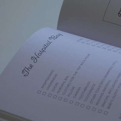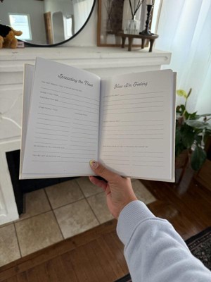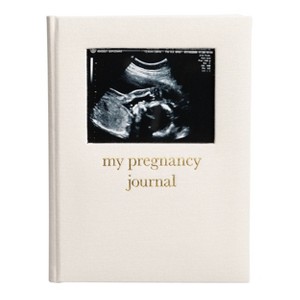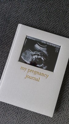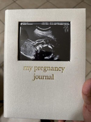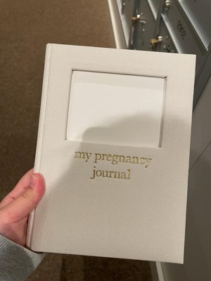 - Cream linen hardcover pregnancy journal with gold foil lettering for a timeless keepsake