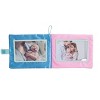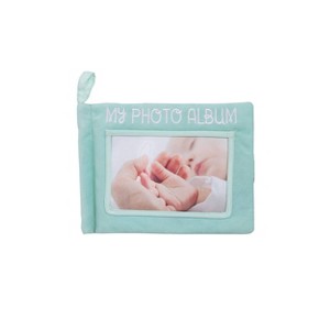 - Includes baby safe, soft photo album with 3 pages in colors of teal, blue, pink, tan and red, includes 4 photo inserts and 1 mirror and a hook and loop clasp