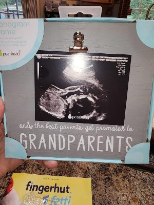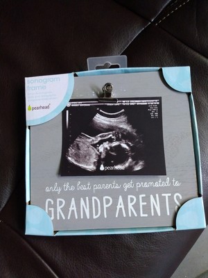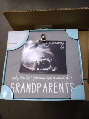 Only the best parents get promoted to grandparents. Pearheads sonogram frame is the perfect gift for new grandparents. This frame is a sweet and simple way to show your parents how much they mean to you. "Only the best parents get promoted to grandparents" is printed in white on the front of the distressed gray-washed frame. Display baby's sonogram using the clip and give to your parents as a gift! Watch as they smile with tears of joy running down their faces! This can be a fun pregnancy announcement or just a simple gift to show your parents how much you care. The wooden frame will fit a 4" x 5" sonogram photo. The distressed gray-wash adds a fun touch to this frame, making it great to display in grandparents home! Simply use the easel to stand on any tabletop or desk or use the hanger to display on any wall. Pearhead's sonogram frame is a keepsake to cherish forever!