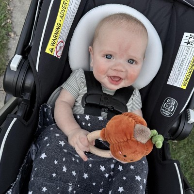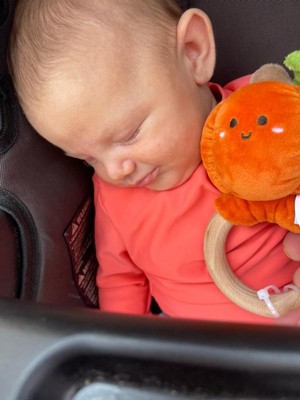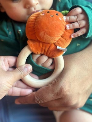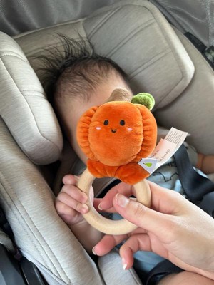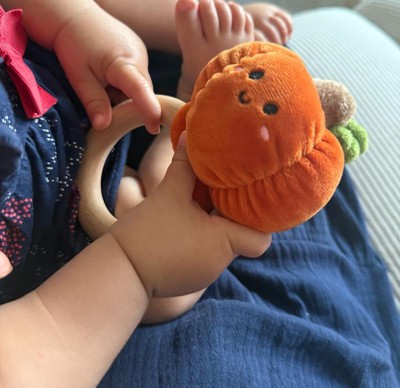 [This review was collected as part of a promotion.] This teether is just too cute! 🧡 My little one loves the soft plush pumpkin, and the wooden ring is perfect for tiny hands (and sore gums). I feel good knowing it’s safe and natural. Such a sweet baby essential – definitely a win for this mama! 🍂👶