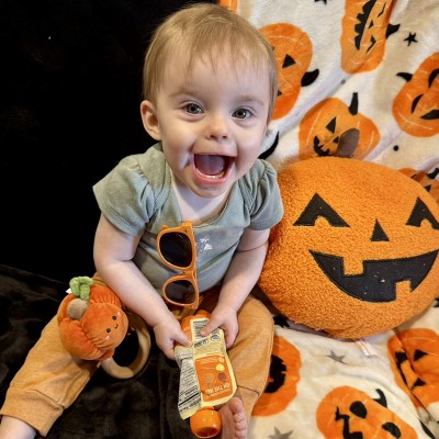 [This review was collected as part of a promotion.] This is so cute! It can be hard to find sweet baby toys that are Halloween themed and not scary. This little pumpkin is absolutely adorable. My baby loves chewing on the wooden side, and it has an adorable rattle as well. I love to use this for my photography business as well to get kids’ attention with the little bell inside!