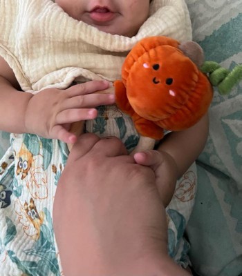 This baby rattle pumpkin is super cute and easy for my baby to hold. It makes a nice gentle sound that keeps my little one entertained. It feels soft and safe to play with. Love this little toy!