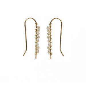 - These sweet ear climbers feature a dainty line of beautiful white pearls that have been wrapped onto the earring frame. Wear climbing up the ear for a feminine statement piece, or dangling to switch it up. Note: This design can be purchased as a single earring or a pair. Available in 14K Gold Filled.
