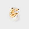 A: These earrings feature a chunky J-hoop design with a gold-tone finish and faux pearl accent.