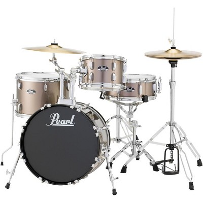 Second-rate gear only makes drumming journey harder. The Pearl Roadshow is not a toy or a hand-me-down. It's a complete drum set package with everything need to start rhythmic journey to the big time. Here are some things to look for when buying first drum kit; see for self how Roadshow stacks up:The cymbals, hi-hat and snare stands should start with a strong and well-balanced tripod base. Double-braced legs and interlocking tilter adjustments are also vital for keeping all parts of the kit in place under the pressure of performance. Roadshow's included hardware package is second-to-none in its class. All stands are dual-reinforced, height- and angle-adjustable, and feature double-braced legs to withstand the pounding onslaught of the heavy-hitting drummer.The snare drum is the voice of the drum set and captures everything from the loudest accents to the softest "ghost" notes. With a matching shell and finish, the Roadshow snare is full of attack and power, yet sensitive enough for drumming at any volume.The bass drum is the tonal heartbeat of the drum set and should not only set the low-end pulse for the groove, but be a foundation for the rest of the complete drum set-up. The Roadshow kick drum features an extended tension/tuning range for low, chest-thumping bass frequencies, and includes locking, slip-free feet (or "spurs"), and secure mounting for toms and accessories.Roadshow's included cymbal set features a 16" brass crash/ride and a set of 14" brass/hybrid hats. Perfect for accents and timekeeping until an upgraded multi-cymbal setup is acquired.