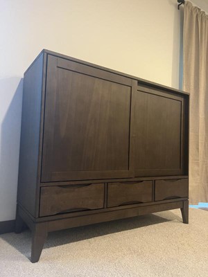 [This review was collected as part of a promotion.] Great Storage Cabinet for my office. I like the 2 doors that slide, there is plenty of room inside and the drawers are really nice. The walnut brown is nice and matched my other pieces I got a while ago.