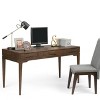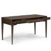 A: Dear customer, Thank you for inquiring about Simpli Home Harper Desk. We would like to inform you that the desk is crafted from Solid Rubberwood. Additionally, the drawer bottom panel and the back of the End Table are both completely finished, which means it doesn't necessarily have to be placed against a wall. Please feel free to write us if further information about this product is needed. Our team will let you know some nice features of this product which might interest you. Thanks, Simpli Home.