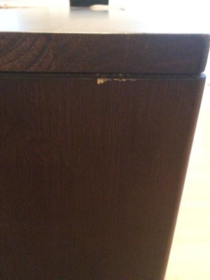 A: Hello, Please be advised that all parts are painted and laminated in walnut brown with a understated matt finish. Thanks