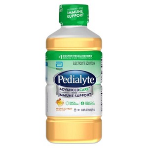 Rapidly restore electrolytes with Pedialyte AdvancedCare electrolyte solution. This advanced rehydration is great for kids and adults and is specially formulated with an optimal balance of glucose and electrolytes. It also has PreActiv Prebiotics to help promote digestive health. Pedialyte is the #1 doctor-recommended brand for hydration and comes in a variety of great-tasting flavors. It’s designed to replace fluids and electrolytes more effectively than some sports drinks, juices, or water. Pedialyte AdvancedCare with immune support has 2x the electrolytes and 75% less sugar vs the leading sports drink.* * Pedialyte AdvancedCare liquid liters have 1080mg sodium and 13g sugars per liter; leading sports drink has ~460mg sodium and ~58g sugars per liter.