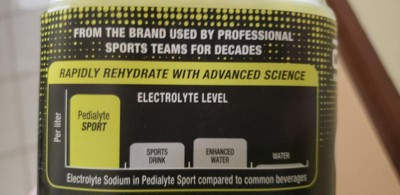 Pedialyte Sport has a scientifically designed balance of electrolytes and sugar, with 3x the electrolytes and ¼ the sugar of the leading sports drink.* It’s formulated for athletes to provide fast hydration and muscle support before, during, and after exercise. And it has 5 key electrolytes that help replace what is lost in sweat during intense workouts. * Pedialyte Sport has 1380mg sodium and no more than 14g sugars per liter; leading sports drink has ~460mg sodium and ~58g sugars per liter.