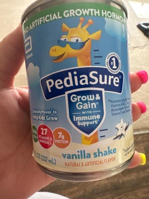 PediaSure Grow & Gain with Immune Support kids nutritional shakes are clinically proven† to help kids grow with 27 essential vitamins and minerals. Each shake has 7 key nutrients for immune support* including 7g of protein which also helps build muscles, and 32mg of DHA omega-3 for brain & eye development. PediaSure Grow & Gain is gluten-free, has no artificial growth hormones,‡ and is suitable for lactose intolerance.§ It’s great for breakfast and as a snack; just open and pour to enjoy. From the #1 pediatrician recommended brand. * Nutrients include protein, vitamins A & D, zinc, and antioxidants (vitamins C & E and selenium). † Studied in children at risk for malnutrition, 2 servings per day. ‡ No significant difference has been shown between milk derived from rbST-treated and non-rbSTtreated cows. § Not for children with galactosemia.