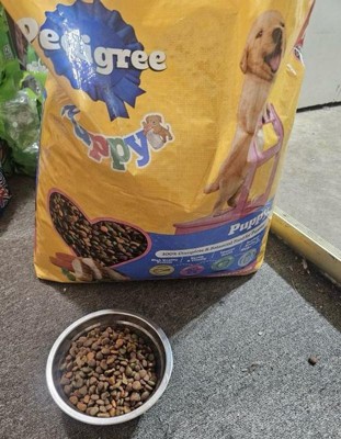 Dogs bring out the good in us. Pedigree brings out the good in them. Express your love for your dog by serving Pedigree Puppy Dry Puppy Food, Chicken, Rice, and Vegetable Flavor recipe. This great-tasting dry puppy food recipe is specifically designed for puppies, made with high-quality protein sources to support muscle development, and is fortified with vitamins and minerals to support a healthy immune system. Pedigree Puppy Dry Puppy Food, Chicken, Rice, and Vegetable Flavor is also 100% complete and balanced for puppies and is made with key nutrients similar to mother’s milk, so you can feel confident that your puppy is getting a high-quality meal. To support your puppy’s health and vitality, this dry puppy food recipe is formulated with 36 vitamins, minerals, and amino acids. With no high fructose corn syrup, artificial flavors, or added sugars, Pedigree Puppy Dry Puppy Food, Chicken, Rice and Vegetable Flavor shows your puppy that you care…and have great taste.