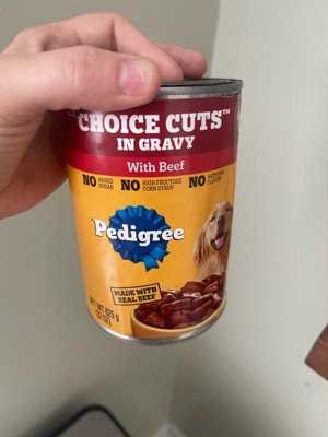 My dogs absolutely goes crazy for the Pedigree Choice Cuts in Gravy! As soon as he hears the can open, he's dancing by his bowl. He licks it clean every single time. It's a great way to make sure he's excited for mealtime. The meaty chunks and thick gravy are a huge hit. Happy dog, happy owner! Occasionally, we reward them with a can of this. The price is reasonable