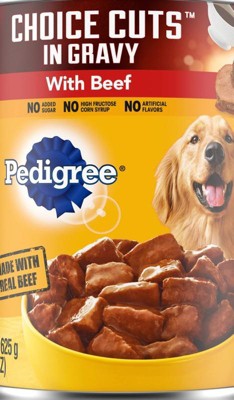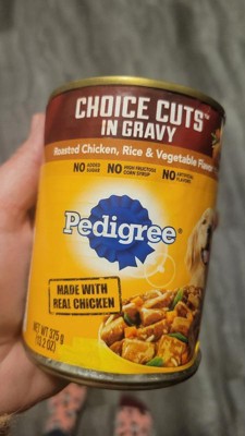 [This review was collected as part of a promotion.] My dog loves the taste of the Pedigree Choice Cuts in gravy. The label says it is made with real chicken and has no added sugar, high fructose corn syrup, or artificial flavors. There are a few ingredients I would prefer weren't in there but overall my dog likes it.