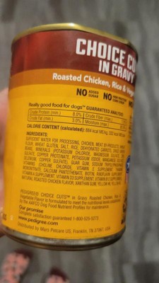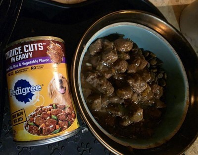 [This review was collected as part of a promotion.] Pedigree Choice Cutes in Gravy is 100% food i can tell my dog enjoys eating. When you open the can it even has the smell of a roast cooking and has a nice chunky consistency like a stew. My dog digs in and eats his dinner so fast when it is choice cute with gravy. Good dog food from a trusted brand.