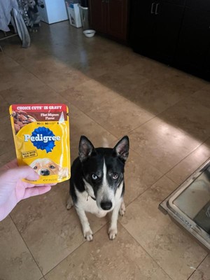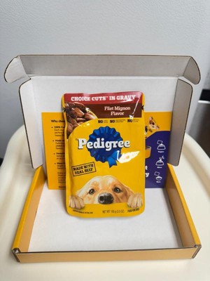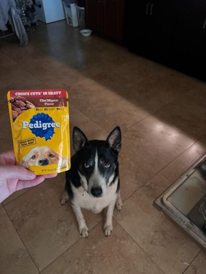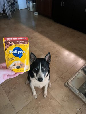 The Pedigree pouch wet dog food offers a delightful dining experience for dogs, featuring a variety of flavors like filet mignon that excite even the pickiest eaters. Guests appreciate the convenient packaging, which makes serving easy and mess-free. The soft texture and rich gravy make it an excellent topper for dry food, ensuring dogs enjoy their meals while receiving essential nutrients. Overall, it's a great option for enhancing mealtime satisfaction.