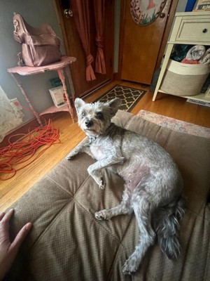 My Boston terrier is 14 years old and doesn’t have many of his teeth left. This is easy for him to chew and he loves the taste. I love the little packages they are the perfect size for a small dog or even for a big dog to add to wet food. It also doesn’t break the bank and is a reasonable price for what you get.
