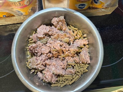 [This review was collected as part of a promotion.] Dogs love it! We have switched from a different brand to Pedigree as the main mix-in for our dogs’ meals. It’s easy to open and the dogs like the flavor. So far no issues with digestion or allergies.