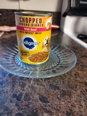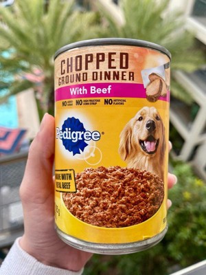 - Mix-it-Up: Pedigree Chopped Ground Dinner leaves no messy leftovers, and can be served as a topper, mixed with dry dog food, or enjoyed as a complete meal for adult dogs on its own.