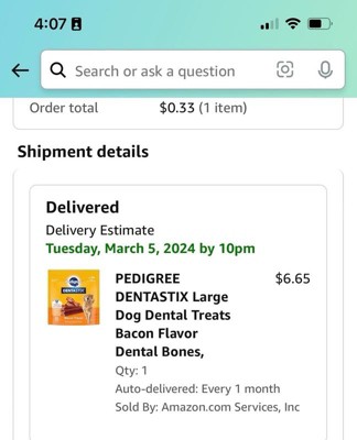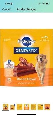 I have been giving my Goldendoodle, Izzy, the Pedigree Dentastix daily for about six months and she absolutely loves them. The bacon flavor actually smells like bacon and when I say “Let’s brush your teeth!” she knows it’s time for her Dentastix. The price point is excellent for the quality and the amount. Also these work so well and cleaning her teeth.