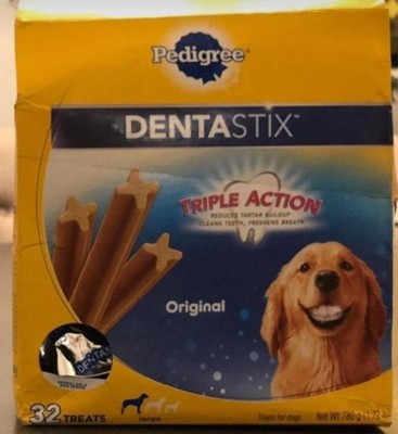 I have been giving my dogs Pedigree Dentastix for years they love it. The first thing they eat in the morning to help keep their breath fresh and teeth clean. Package is easy to open and keeps the treats fresh. Great value.