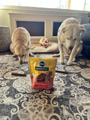 I was looking for something to help freshen up my doggo's breath and decided to give these a try. She seems to like them and looks forward to her daily Dentastix. I'm not too sure if it is helping because I try not to get in her face, but I am glad she has taken to these. I figured it is worth a try. There are three flavors. I can't be too judgy about how flavorful they are but based on their aroma and my sense of smell, I can say that two of the three flavors smell pleasant enough. The fresh (mint?) and beef flavors are reasonable. The chicken stix have a nasty odor, however this one seems to be my dog's favorite. So, what do I know? The stinkier the better, I guess... Bottom line is that my dog likes them, and I hope they help her doggie breath