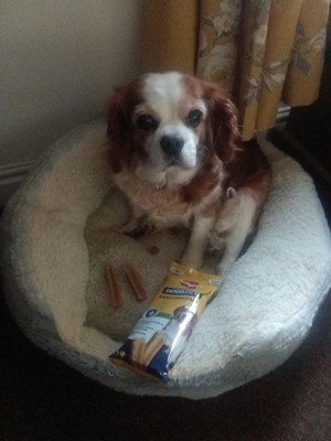My dogs love these Dentastix chews. They are a part of their morning routine and seem to help some with plaque.