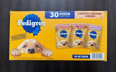 Pedigree Chopped Cuts in Gravy Chicken, Cheese, Steak, Beef and Bacon Flavor Pouch Variety Pack Wet Dog Food - 3.5oz/30ct