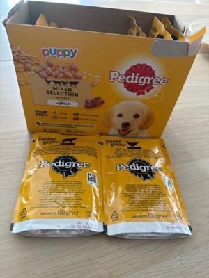 Pedigree choice cuts puppy morsels in sauce with chicken and with beef are great value for your money my dog love the texture and the taste the scent strength isn’t to bad i just love the packaging and it’s just the perfect amount for your puppy’s
