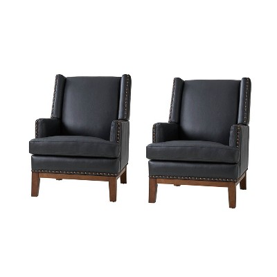 Pedro Genuine Leather Arm Chair with Solid Wood Frame and Removable Seat Cushion|ART OF LIVING DESIGNS-BLACK