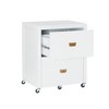 Tidy up your workspace without sacrificing style with the Peggy Rolling File Cabinet by Linon. Featuring a sleek white finish and elegant rose gold campaign-style hardware, this compact file cabinet brings modern flair to any home office. Two drawers offer smart storage—one designed for letter or legal-sized files, and the other perfect for office essentials. Whether you’re organizing documents or corralling clutter, this piece is as functional as it is fashionable.