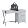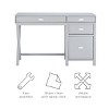 Elevate your workspace with the Peggy Side Storage Desk by Linon—a perfect blend of style, function, and organization. Designed to help you stay focused and clutter-free, this modern desk features a 48” x 18” surface that offers ample room for your laptop, planner, and creative essentials, all without overwhelming your space. Whether you're upgrading your home office, dorm, or bedroom setup, the sleek grey finish and rose gold hardware bring a fresh, contemporary touch to any setting.