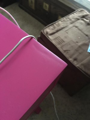 I have been searching for the right desk and when I came across this Raspberry Pink desk I was overjoyed. I received it in record time, took me about an hour or so to put it together. I was a little nervous when I seen the color Red on it and was hoping that it was not red but to my surprise it was Pink. This is the theme that I was going for when I started to create my office space finally. Some of the holes were a little tight so I had to break out my drill, luckily I had one. I did have a little indentation on the right side but other than that I'm liking my desk very much. Don't mind the Wine sitting on the corner of the desk, I needed something to help put the desk together.