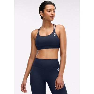 Low-Medium support bra with laser perforated ventilation at front and back, projection seams for cup capacity, and removable cup pads. Peloton Cadent Fabric is a performance double knit—breathable, moisture wicking and designed for ease of motion while offering moderate compression. Durable enough for all activities. 71% Polyester, 29% Spandex. Machine wash cold. Tumble dry low. Peloton wordmark at left bottom band. Imported. Size and Fit: Tight Fit: Meant to fit close to the body. Chinwendu is 5’11” height, 36” bust, 29” waist, 40½” hip, wearing a size S. Jennifer is 5’8” height, 38“ bust, 33“ waist, 48” hip, wearing a size 1X. Made For: Bike, Tread, Row, Bootcamp, Strength, Yoga, Everyday