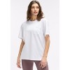 Crewneck, short sleeve with chest pocket and back graphic. 100% Cotton. Peloton flag tag at chest pocket. Imported. Size and Fit:. Classic Fit: Easy silhouette that floats away from the body. Devin is 6’2" height, 41 ½" chest, 32" waist, 32" inseam, wearing a size M. Made For: Bike, Tread, Row, Bootcamp, Strength, Yoga, Everyday