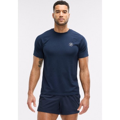 Crewneck, set-in short sleeve tee with mesh inset at back yoke. 91% Polyester, 9% Spandex. Peloton wordmark graphic at left chest. Imported. Size and Fit:. Classic Fit: Easy silhouette that floats away from the body. Devin is 6’2" height, 41 ½" chest, 32" waist, 32" inseam, wearing a size M. Made For: Bike, Tread, Row, Bootcamp, Strength, Yoga, Everyday.