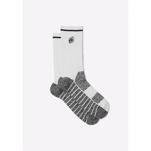 Performance crew sock with Peloton logo. 97% Nylon, 3% Elastane. Machine wash cold with similar colors. Tumble dry low. Imported. Size and Fit: Small: Women's Shoe Size: 4 - 6.5. Medium: Women's Shoe Size: 7 - 9.5 / Men's Shoe Size: 6 - 8.5. Large: Women's Shoe Size: 10 - 13 / Men's Shoe Size: 9 - 12. Made For: Bike, Tread, Bootcamp, Row, Strength, Yoga, Everyday.