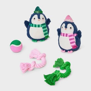 - Includes a ball, 2 rope toys and 2 penguin toys