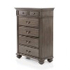 Elevate your personal space in chic, elegant style. Crafted with sturdy solid wood in a rich gray finish, this gorgeous, traditional chest of drawers offers a classically beautiful design and ample storage space for your stylish bedroom environment. Antique brass handles add a luxurious touch, while six spacious drawers on ball bearing glides offer plenty of space for your wardrobe storage needs.