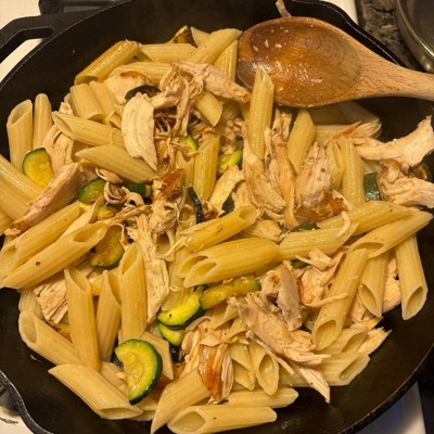 [This review was collected as part of a promotion.] This pasta is visually thicker and higher quality than the brands I usually purchase, with the noodles being larger tubes and longer. I cooked it according to the package directions and noticed that the noodles cooked up to a generous size. They were delicious with some marinara sauce and green beans. I also think some crumbled feta or shredded Parmesan would be a great compliment to these noodles. My children ate them well so I was pleased that they enjoyed them!