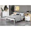 Elevate your bedroom aesthetic with the Pensy Mid-Century Modern White Finished Solid Wood Full Sized Platform Bed Frame by Powell. Crafted with meticulous attention to detail, this bed frame seamlessly combines style and functionality. The sleek 76.5" x 56.5" design is perfect for tight spaces and large minimalist settings alike, offering a contemporary touch with its elegant white stain finish. The solid pine wood construction ensures unmatched strength and durability, providing a reliable foundation for your full-size mattress without the need for a box spring.