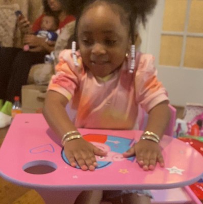 My daughter loves just product. She can now sit and eat in a chair desk designed just for her level of growth and development.