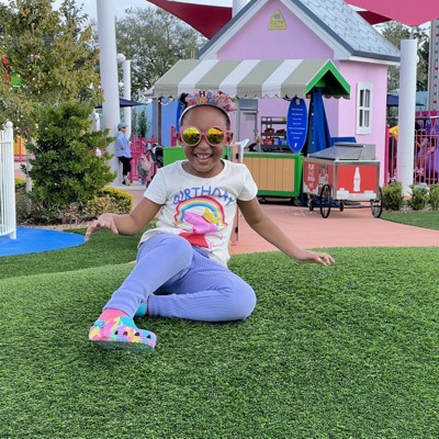 Your little girl is ready for a day of adventure with her favorite character in this cute Peppa Pig shirt! This stylish short sleeve tee features vibrant artwork of Peppa with a choice of a colorful rainbow design with the words "Birthday Magic" or a pretty flower print with the words "Big Sister"! Soft and comfortable, this fashionable Peppa Pig top is perfect for a day of fun and play!