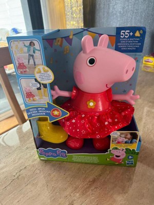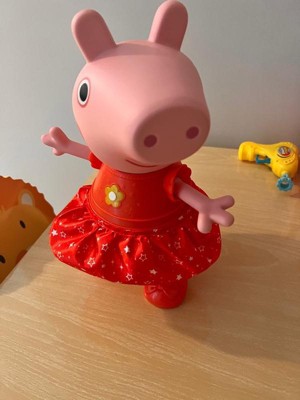 - INTERACTIVE PEPPA PIG DOLL: Talk, play, sing, dance, and party along with Peppa! This 12-inch (30 cm) tall Peppa doll is wearing a sparkly party dress and comes with removable yellow wellies that change how she plays. Batteries included