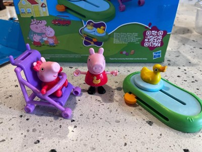 Everything's just ducky with Peppa and Evie's Park Fun playset! This 4-piece Peppa Pig toy set comes with 2 favorite Peppa Pig characters, Peppa and her baby sister Evie, wearing matching yellow duck outfits! Little ones can imagine Peppa pushing Evie in the stroller and watching the duck swim back and forth in the pond! Inspired by the show, these toys for girls and boys ages 3 and up are sure to spark little piggies' big imaginations! A fun small gift for kids who love the show. © 2024 ABD Ltd/Hasbro/HCPL Ltd. HASBRO and PEPPA PIG and all related trademarks TM & © 2024 Hasbro/Hasbro Consumer Products Licensing Ltd. Peppa Pig © 2003 Astley Baker Davies Ltd. and HCPL Ltd. Includes 2 figures and 2 accessories. Ages 3 and up
