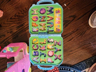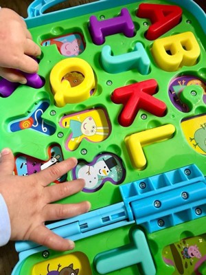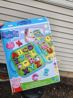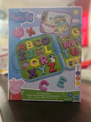 P is for Peppa Pig! When kids are little and still learning, toys like Peppa's Alphabet Case can help them explore letters, colors, and more! Underneath each letter is a picture of something from Peppa's world, so parents can help preschoolers practice matching letters with sounds, naming colors, and even spelling simple words in the window. Little piggies can work on honing their fine motor skills as they fit the 26 letter pieces into the puzzle. This interactive alphabet puzzle toy comes in a cute carrying case so your child can have fun learning letters with their favorite Peppa Pig friends on the go! Peppa Pig toys make wonderful gifts for girls and boys 3 years old and up.